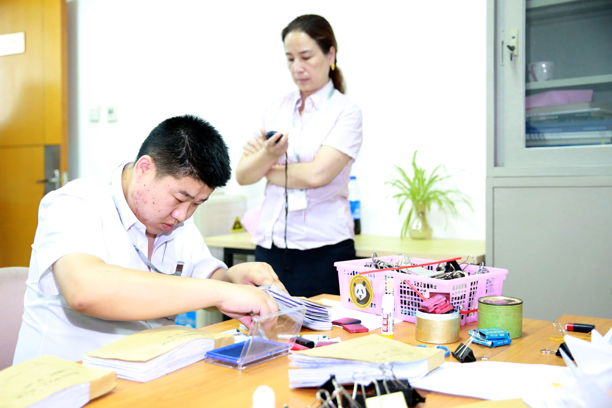 接下来进行的是凭证装订——随着选手的坐定和计时人员的就位,紧张而激烈的凭证装订正式开始,选手们手、眼、脑配合,将凭证装订得平整、牢固、美观,展示了良好的专业素养。