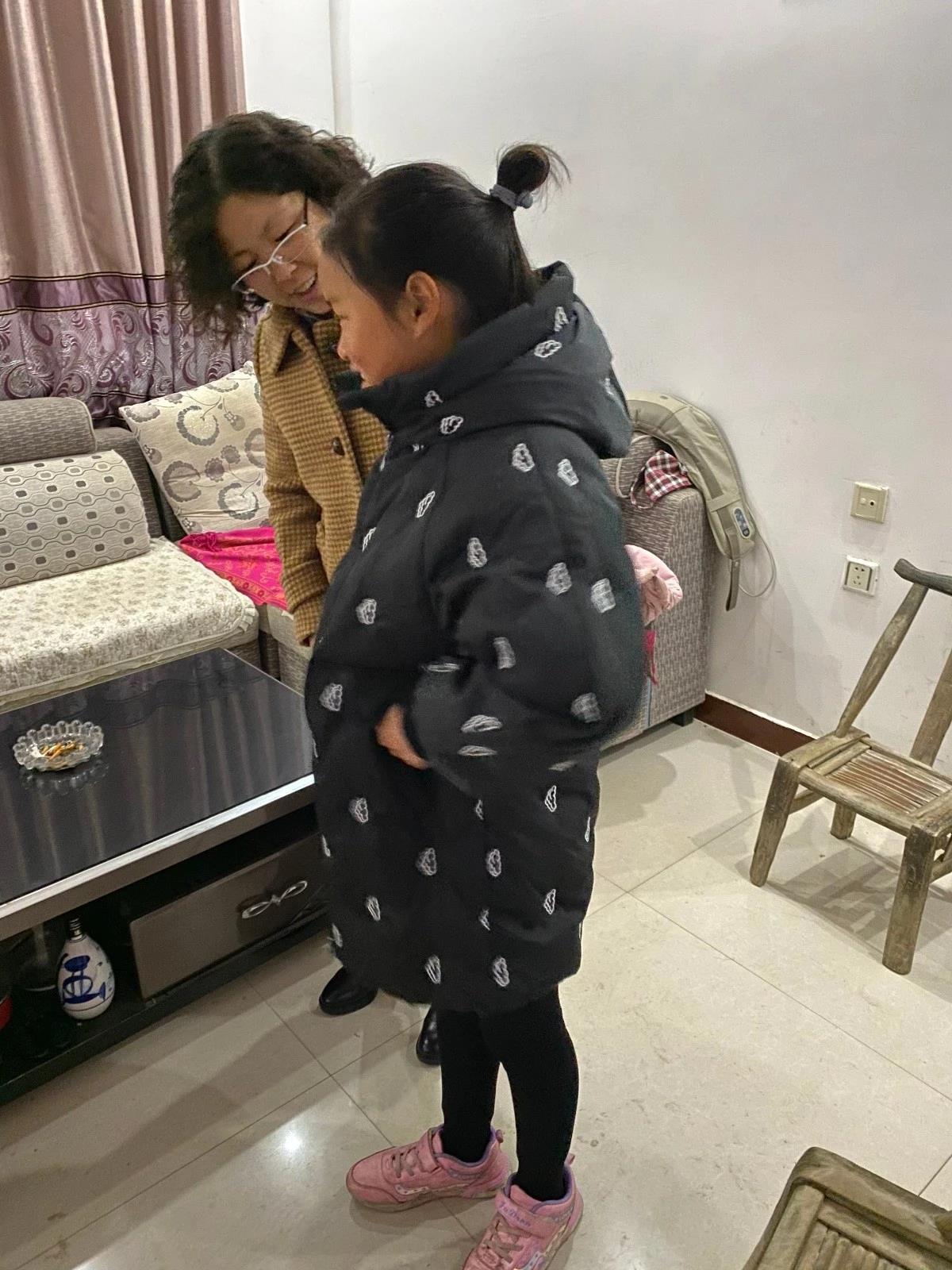 气温转凉,大家开始收拾冬装的时候,我们想到了骑电动车上下学的佳佳,于是购买了加厚羽绒服、书籍以及食品等再次来到佳佳家,便有了开头的那一幕。