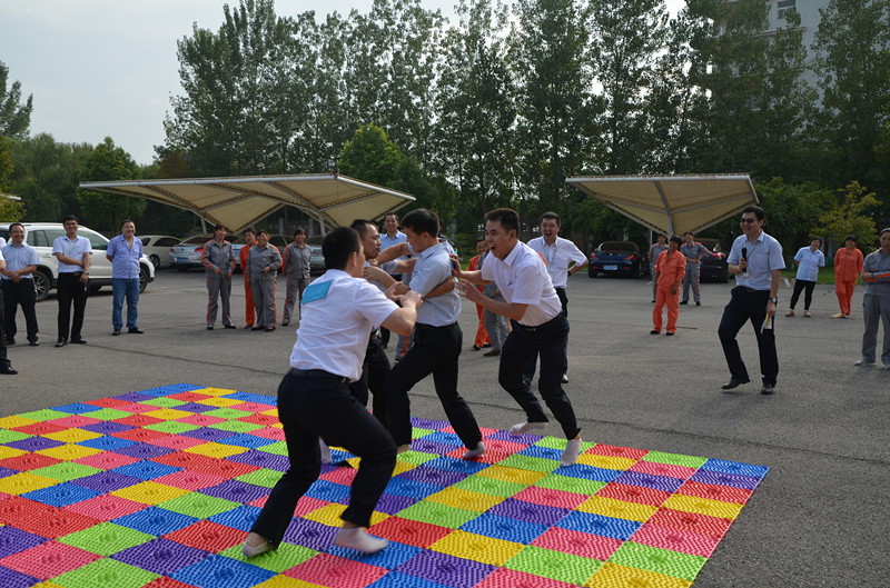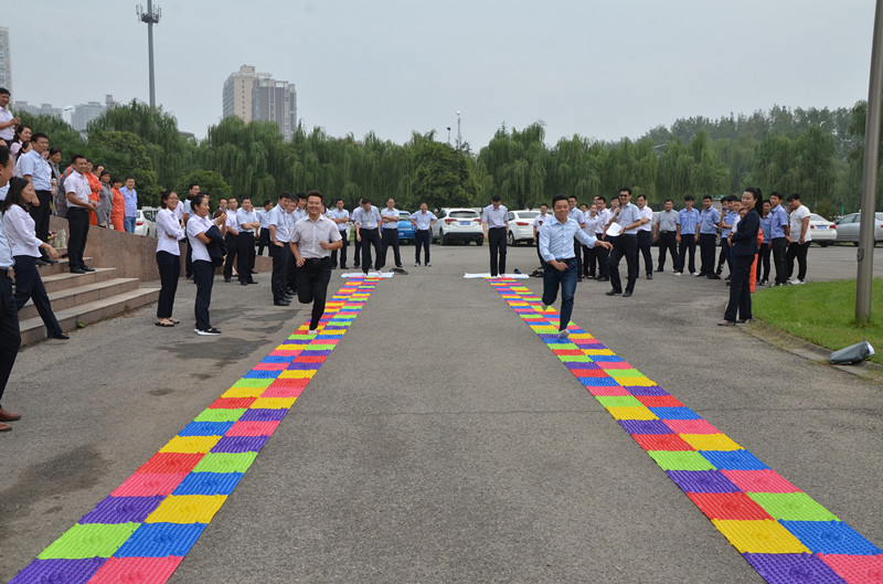 此次运动会举办地点,分为东、西两院。东院运动会:总公司、钢化设备公司两家公司参赛;西院运动会由风机公司举参赛。东院运动会比赛共五个项目:指压板接力、比划猜、抢凳子、珠行万里、撕名牌;西院运动会比赛共四个项目:两人夹球、抢凳子、顶气球、海底捞。运动会还没有开始,各部门的员工已经排好了队伍聚集在了公司大楼广场上,他们心中充满了期待,充满了“拼搏才会赢”必胜信念。