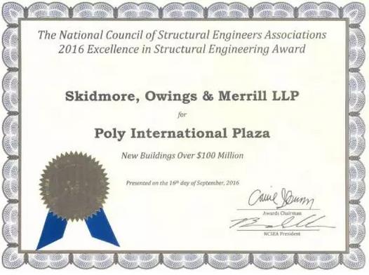 2016年9月16日,美国国家结构工程师协会(NCSEA)在佛罗里达州奥兰多市举行的大会中宣布,北京保利国际广场项目获得该协会颁发的2016年优秀结构工程设计奖!而其中的另一个获奖工程是韩国首尔乐天大厦,之中也可以找到玩球官方网站_玩球(中国) 的身影。