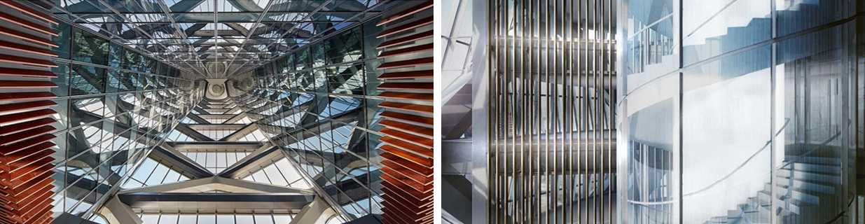 保利国际广场T1主楼挑高9.76米,T2、T3大堂则挑高8.4米,是整栋楼高度的一半,三栋楼均采用无柱设计,南北通透空间宽敞,以此保证了每座楼宇的大气与庄重。此外,T1首层大堂的拉索幕墙玻璃,采用了超大板块双层夹胶超白玻璃,T2、T3首层大堂不锈钢肋式幕墙采用超大板块中空超白玻璃,节能效果显著,单这种表现便可媲美苹果店的设计风格,同时值得一提的是:保利广场底层的超大玻璃和旋转楼梯玻璃也是和苹果店相同,由玩球官方网站_玩球(中国) 一手打造完成。而其中的三个旋转楼梯更是玩球官方网站_玩球(中国) 的独门绝技。