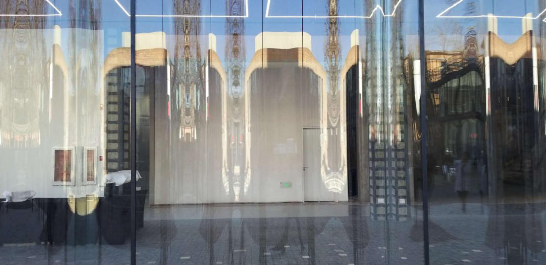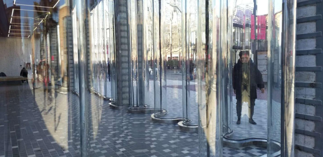 这栋建筑是尤伦斯当代艺术中心的一个艺术馆,建筑师提出让门口的玻璃幕墙也作为一个艺术装置真是个绝妙的想法!